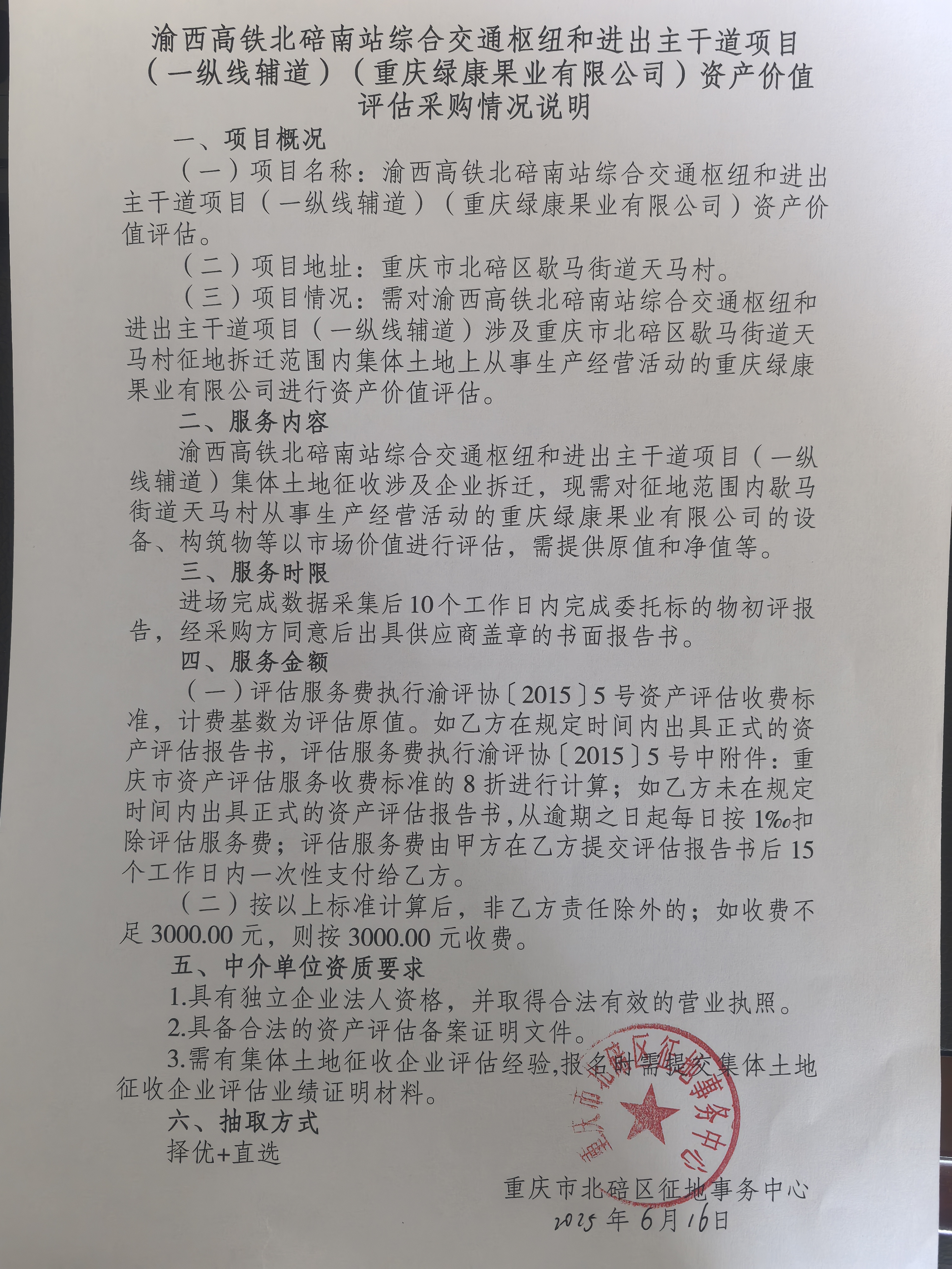 我单位在重庆市网上中介超市公开选取资产评估中介服务机构,现将相关事项公告如下:
